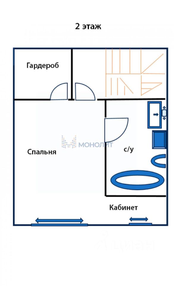 2 этаж - спальня, гардеробная, санузел, кабинет