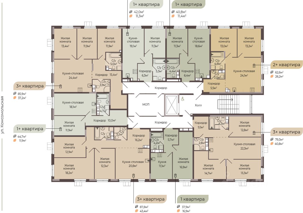 ''Трио'' — это новый жилой комплекс комфорт-класса, который расположится на Комсомольской улице в Автозаводском районе Нижнего Новгорода. ЖК ''Трио'' состоит из трёх ярких одноподъездных корпусов. Высота каждого корпуса не превышает 8 этажей. А это значит, что дом будет ''камерный'', с небольшим количеством соседей, которые станут настоящими друзьями. В ЖК ''Трио'' запроектировано 7 видов планировочных решений площадью от 24,8 кв.м. до 89 кв.м. Всего в комплексе будет 200 квартир. Важным преимуществом является наличие кладовых, которые будут располагаться на 1 этаже. Благоустроенный закрытый двор с площадками для детей разных возрастов, зонами отдыха для взрослых и придомовой территорией с озеленением — станет любимым местом для прогулок. Для комфортного проживания и безопасности будущих жильцов в комплексе запроектировано 146 машиномест на прилегающей территории, что реализует концепцию жилого комплекса ''Двор без машин''. Приобретая квартиру в ЖК ''Трио'', вы обретаете новое качество жизни в уже сформировавшейся инфраструктуре, где в пешей доступности располагаются детские сады и школы, поликлиники и ветеринарные клиники, супермаркеты и торговые центры, остановки общественного транспорта, парикмахерские и т.д. Срок сдачи дома - 4 кв. 2026 г. Цена указана с максимальной скидкой 10%. Цена действует при 100% оплате стоимости приобретаемого объекта или ипотеке. В зависимости от уровня первоначального взноса применяется скидка от 1-9% (при приобретении квартиры в рассрочку). Уточняйте подробные условия и наличие квартир в офисе продаж, записывайтесь на консультацию!