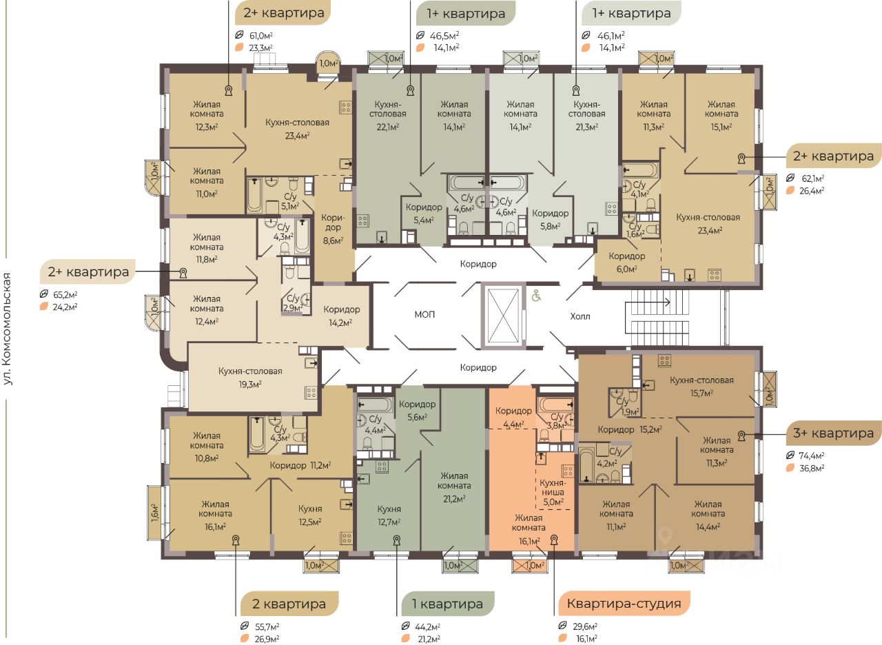 КВАРТИРА С ЧИСТОВОЙ ОТДЕЛКОЙ. ''Трио'' — это новый жилой комплекс комфорт-класса, который расположится на Комсомольской улице в Автозаводском районе Нижнего Новгорода. ЖК ''Трио'' состоит из трёх ярких одноподъездных корпусов. Высота каждого корпуса не превышает 8 этажей. А это значит, что дом будет ''камерный'', с небольшим количеством соседей, которые станут настоящими друзьями. В ЖК ''Трио'' запроектировано 7 видов планировочных решений площадью от 24,8 кв.м. до 89 кв.м. Всего в комплексе будет 200 квартир. Важным преимуществом является наличие кладовых, которые будут располагаться на 1 этаже. Благоустроенный закрытый двор с площадками для детей разных возрастов, зонами отдыха для взрослых и придомовой территорией с озеленением — станет любимым местом для прогулок. Для комфортного проживания и безопасности будущих жильцов в комплексе запроектировано 146 машиномест на прилегающей территории, что реализует концепцию жилого комплекса ''Двор без машин''. Приобретая квартиру в ЖК ''Трио'', вы обретаете новое качество жизни в уже сформировавшейся инфраструктуре, где в пешей доступности располагаются детские сады и школы, поликлиники и ветеринарные клиники, супермаркеты и торговые центры, остановки общественного транспорта, парикмахерские и т.д. Срок сдачи дома - 4 кв. 2026 г. Уточняйте подробные условия и наличие квартир в офисе продаж, записывайтесь на консультацию!