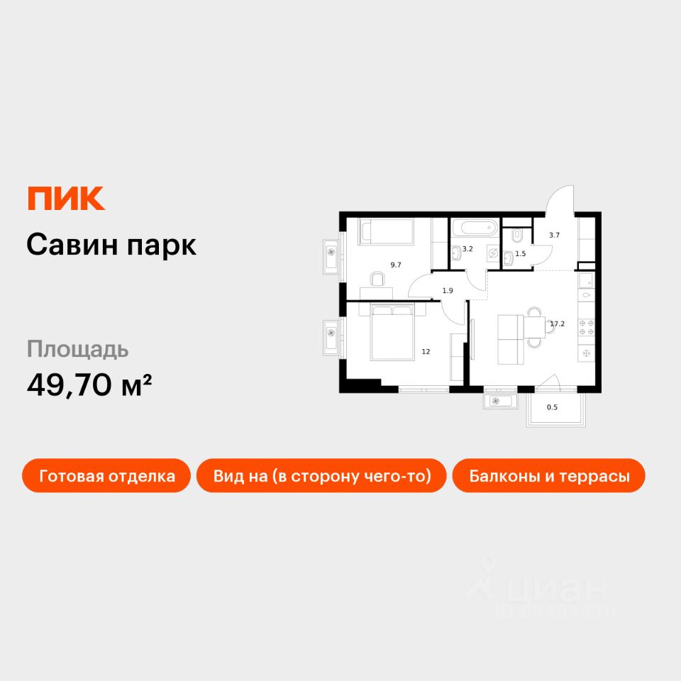Продаётся 2-комн. квартира площадью 49,7 кв.м на 2 этаже 17 этажного дома (Корпус 7, Секция 1) проекта ПИК Савин парк. Светлый просторный подъезд на уровне земли, функциональная планировка, большие окна, c отделкой.
