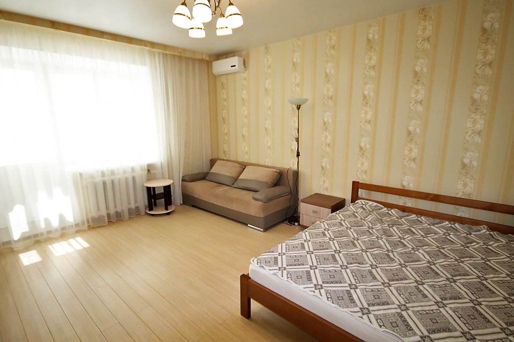 Общ. пл. — 46 кв. м, комната — 19.2 кв. м, кухня — 10.5 кв. м., санузел совмещен. Есть просторный балкон с выходом из комнаты. В квартире выполнен качественный ремонт. Укомплектована всей необходимой для проживания современной мебелью и техникой. Установлены кондиционер, посудомоечная машина и бойлер.