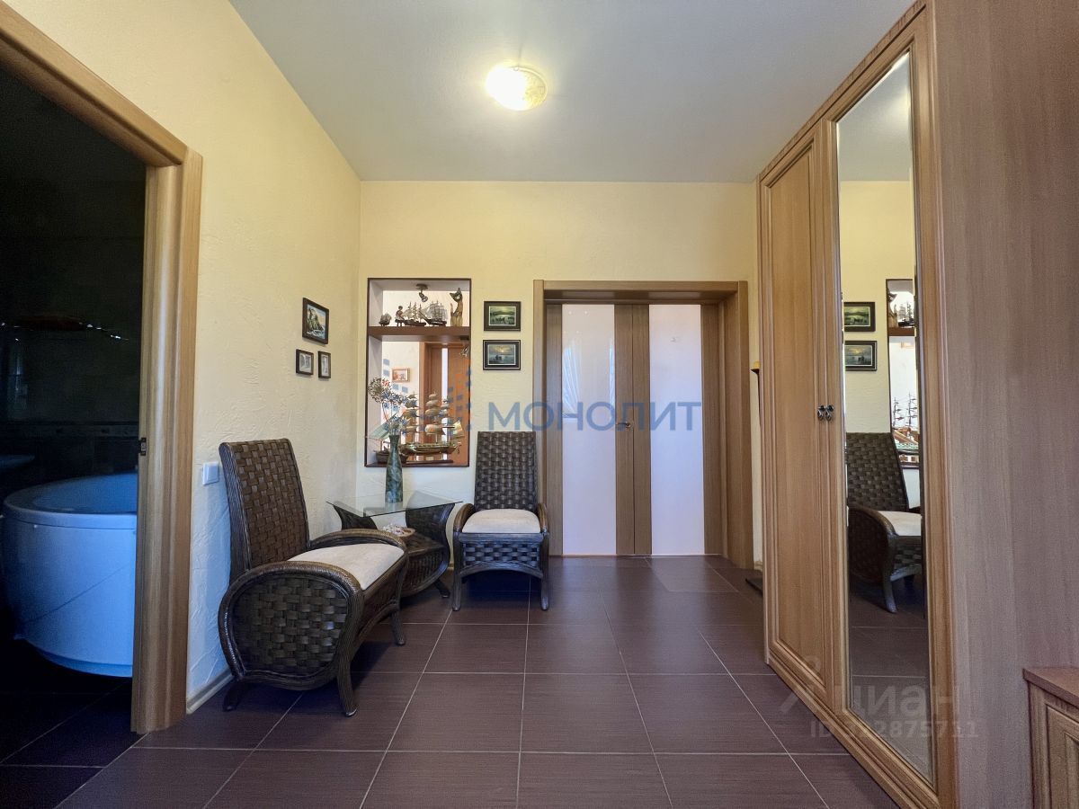 Предлагается к продаже современный элитный коттедж 2012 года постройки, площадью 278,6 кв.м., расположенный в живописном поселке Малое Козино (Балахнинский район), по улице Коминтерна. Дополнительно мы рассматриваем возможность обмена коттеджа на квартиру или таунхаус в Нижнем Новгороде с Вашей доплатой, что позволяет реализовать эффективную сделку для тех, кто хочет сменить проживание в городе на загородное жилье. Рассматриваем варианты со следующими параметрами: - район: Приокский и Советский районы (ЖК Анкудиновский парк, Цветы и прилегающие комплексы, Новая Кузнечиха, Героев Донбасса, район парка Швейцария, прочие комплексы районов) - площадь: квартира от 45 до 62 кв.м., таунхаус не больше 170 кв.м. Если вы заинтересованы в этом предложении или хотите получить дополнительную информацию — свяжитесь с нами! Общая характеристика коттеджа и земельного участка: * Конструкция: монолитный армированный бетон марки М200 с пенополистирольной опалубкой для повышения теплоизоляции стен и фундамента. * Фасады: облицованы декоративным кирпичом, зона у земли — высотой 1000 мм, верхняя часть отделана декоративной цветной штукатуркой. * Внутренние стены: гипсокартон по пеностиролу. * Кровля: мягкая черепичная на деревянной обрешетке с гидроизоляционным слоем. Коммуникации: * Газоснабжение и отопление: одноконтурный газовый котёл Baxi Slim 1,48iN (48 кВт), газовая плита. * Тёплый пол: установлен на цоколе и первом этаже, радиаторы — на втором. * ГВС: бойлер косвенного нагрева Termico AMET 150 INOX. * Водоснабжение: собственная скважина (глубина 11,5 м) с насосной станцией. * Водоотведение: кирпичный септик объемом 12 м, обслуживание каждые 2,53,5 месяца. Планировка: * Первый этаж: холл, просторная столовая, гостиная с камином, рабочий кабинет, спальня, санузел, выход на открытую террасу. * Второй этаж: три спальни, санузел, пространство для комнатных растений с панорамными окнами и видом на участок * Цоколь: комната отдыха с сауной и душевой кабиной, мини-бассейн, игровая или спортзал, прачечная, котельная, гостевая комната, санузел, выход на открытую террасу. Участок: * Площадь — 14 соток, ровной и правильной формы. * Ландшафтный дизайн с декоративными посадками и кустарниками *Зона для барбекю, детский городок, место для летнего бассейна *Беседка с деревянной мебелью. * Посадки: фруктовые деревья (яблони, груши), кустарники (смородина, малина, крыжовник, жимолость). Огород: *5 грядок *теплица. Дополнительные объекты: * Гараж — 92,8 кв.м., оборудованный автоматическими воротами, подключён к системам ГВС, ХВС, электроснабжению, отоплению и канализации. *Русская баня (18 м²) на дровах, с отдельной скважиной и с системами водоснабжения Инфраструктура посёлка: *Два магазина формата ''У дома'' *Пункт выдачи Ozon, Wildberries, Яндекс Маркет *Чистый песчаный пляж р. Волга (1 км.) Этот дом — пример высокого качества строительства, комфорта и уюта. Ухоженная территория и богатая инфраструктура создадут все условия для приятного проживания и отдыха экологически чистом районе