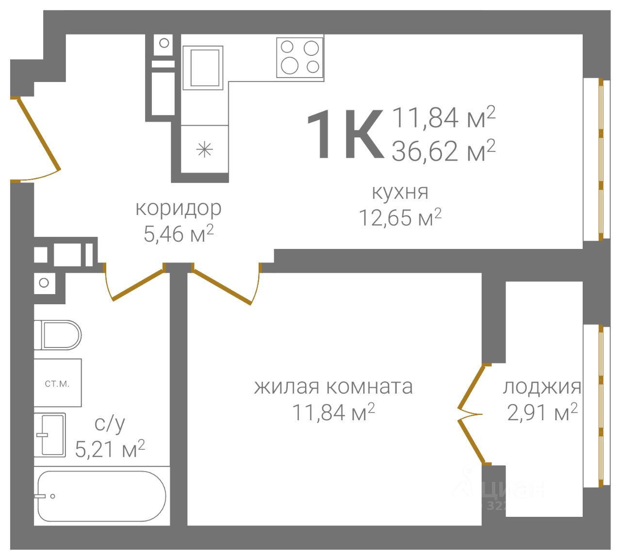 Общая площадь36,62 м2