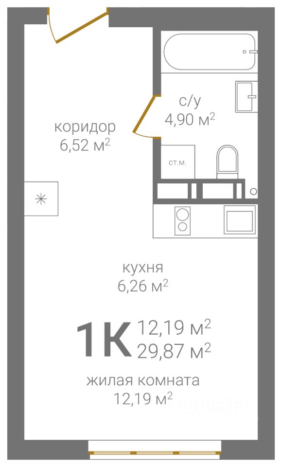 Общая площадь29,87 м2