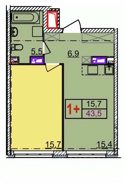 Общая площадь43,3 м2
