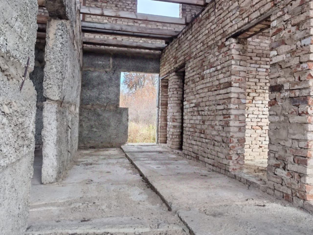 Основа дома это - арболитовые блоки и кирпич с капитальным кирпичным фундаментом (цоколем) 2 метра. Подвал выложен блоками 60 см, внизу подвала выложена песчаная подушка. Пол в доме выложен крупнопанельными железобетонными плитами. Внизу расположены огромная кухня-гостиная, 2 просторные большие спальни. В каждой комнате имеются большие арочные окна. В доме предусмотрена большая душевая комната с эксклюзивной планировкой. Отдельная комната-гардероб. Так же существует в доме второй этаж, где при желании, так же можно сделать несколько просторных комнат.