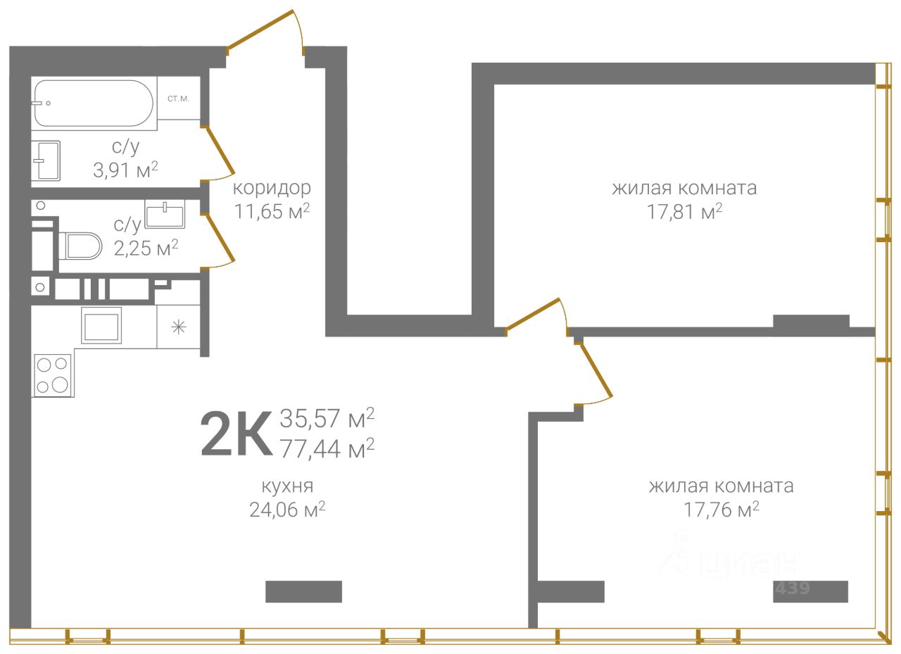 Продаётся 2-комнатная квартира в строящемся доме (Дом 2 ), срок сдачи: II-кв. 2027, общей площадью 77.44 кв.м., на 22 этаже. Новый жилой комплекс ''КМ Печерский'' от застройщика ''ГК Каркас Монолит'' расположен по адресу Россия, Нижний Новгород, Казанское шоссе.