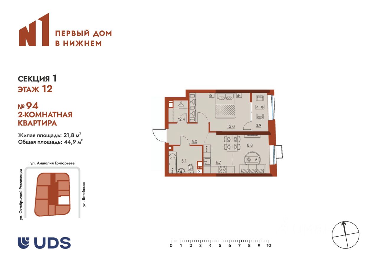 Общая площадь44,9 м2