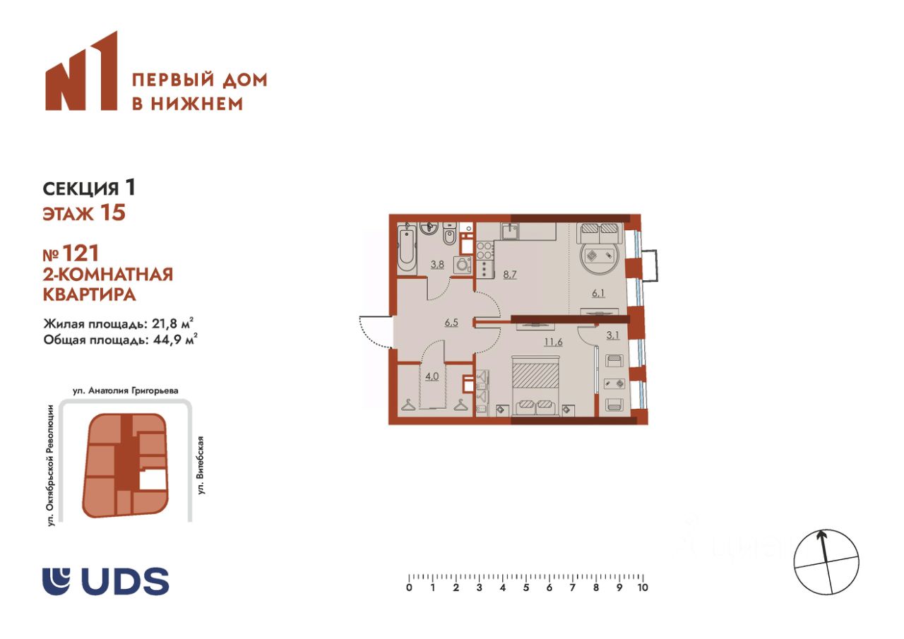 Жилая площадь21,8 м2