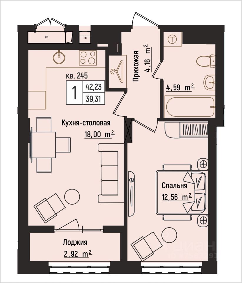 продам 1-к, Литературная, 59 037 220 ₽