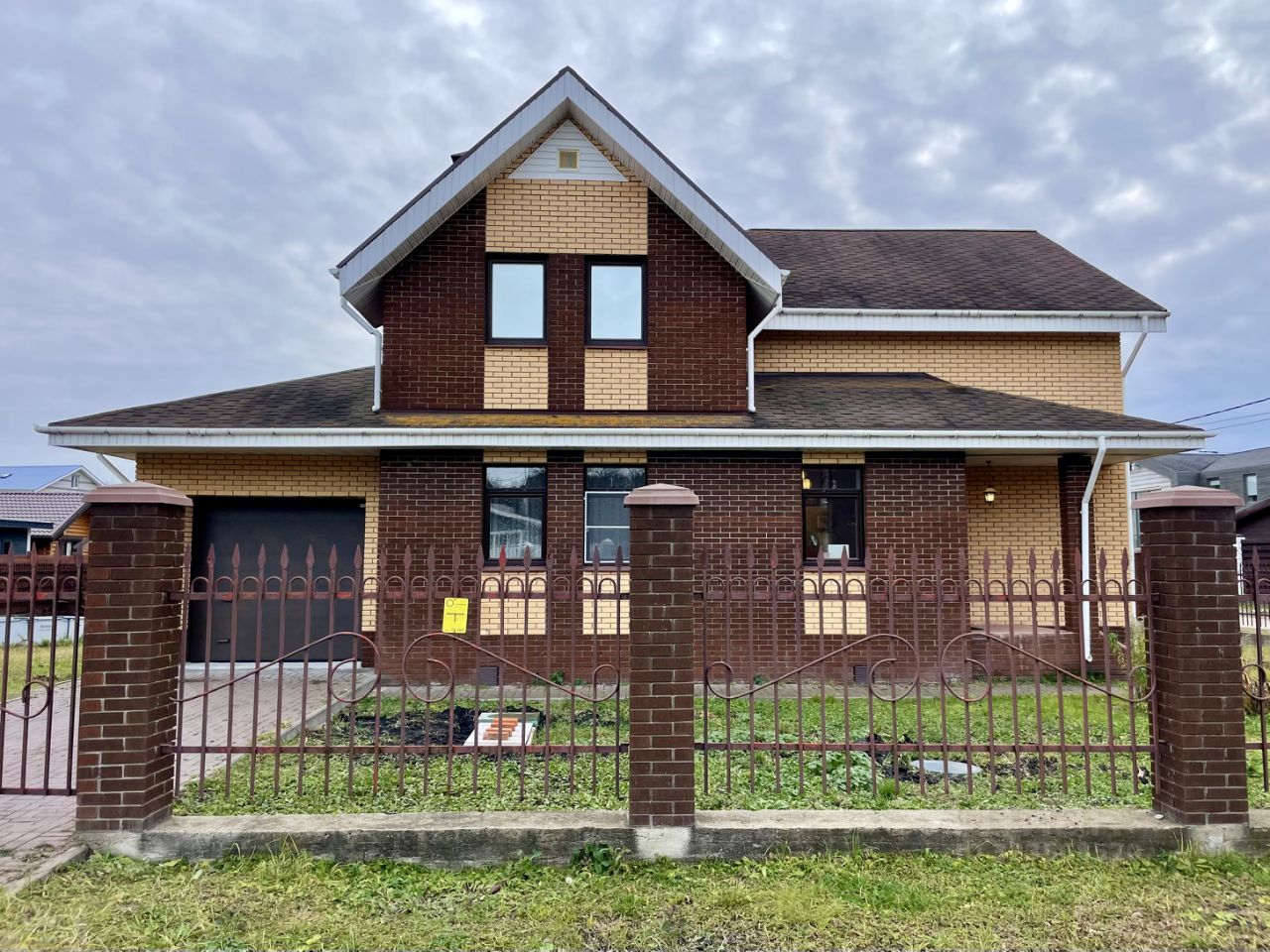 Первый этаж: просторный зал, гостевая комната, кухня, выход в гараж, террасу, санузел. Гараж с механическими воротами, на один автомобиль.
