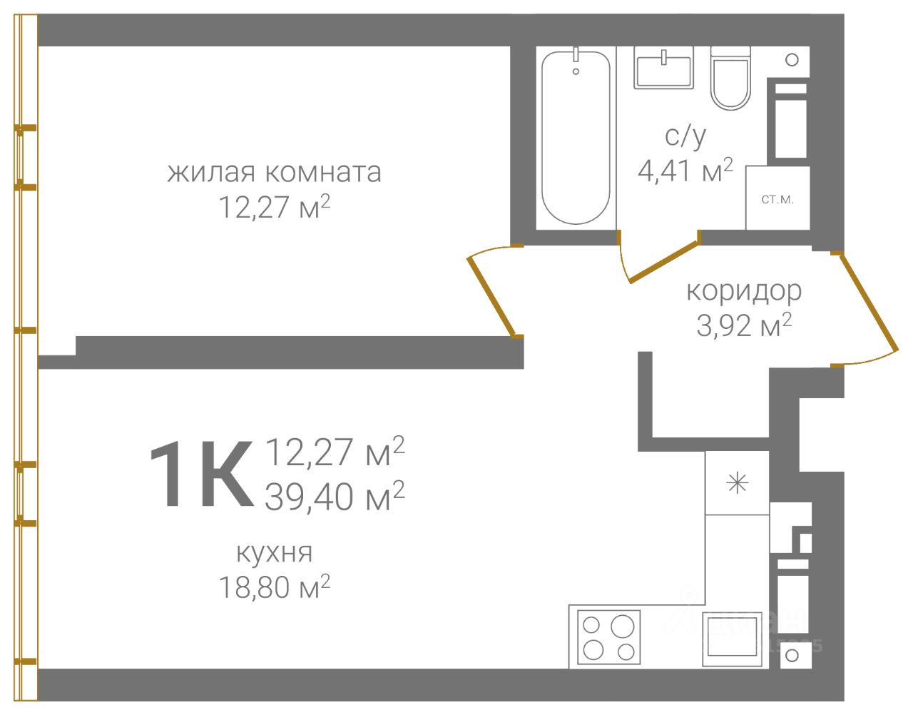 Общая площадь39,4 м2