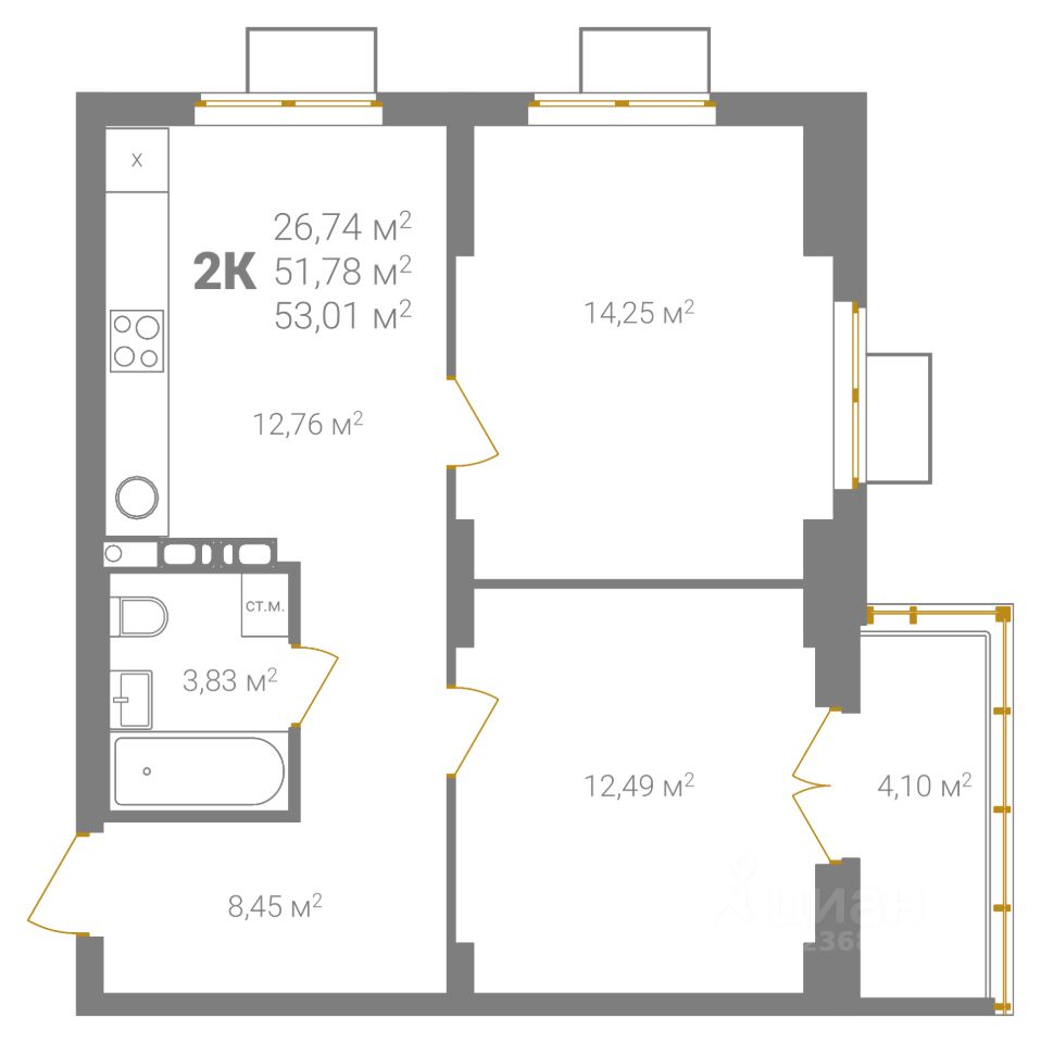 Общая площадь53,01 м2