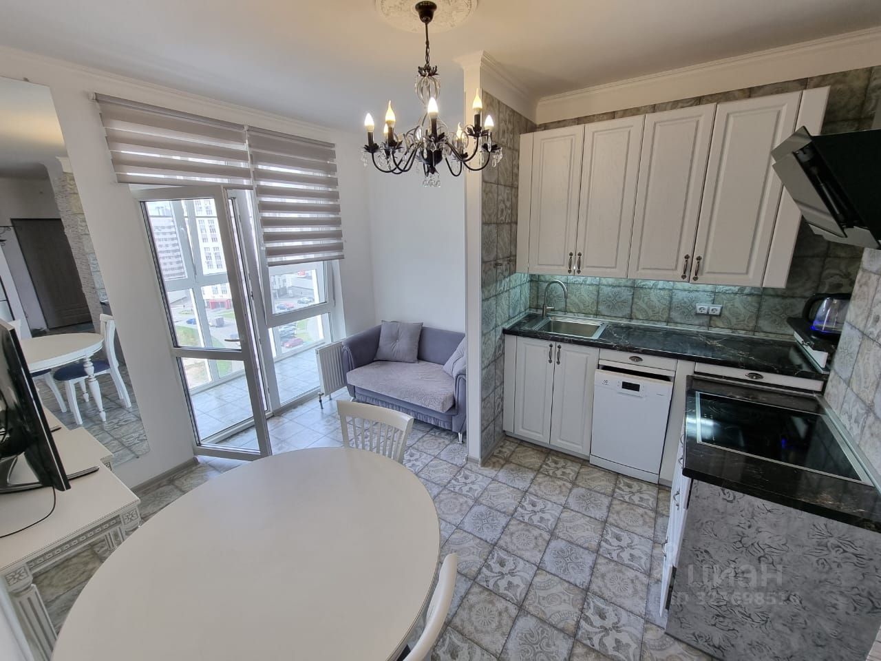 Застекленная лоджия с панорамным остеклением добавляет определенной изюминки данной квартире. Квартира имеет видовые характеристики (вид на реку из окон спальни и из кухни-гостиной). Панорамная видовая застекленная лоджия.
