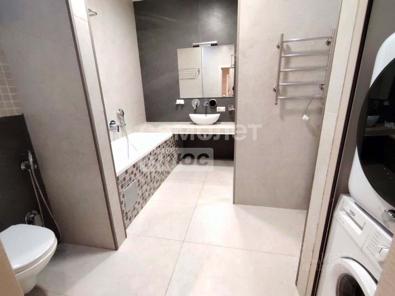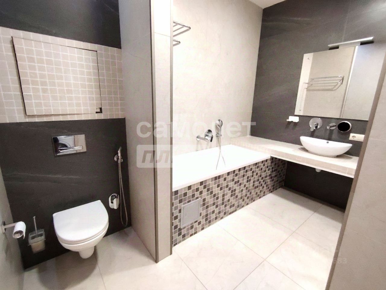 Планировка: Удачная и просторная. Кухня-гостиная объединена, две изолированные комнаты (спальня и детская, подойдет под кабинет), просторная гардеробная и кладовка. Ремонт: Выполнен с использованием дорогих и качественных материалов. Комфорт: Во всех комнатах установлены кондиционеры, теплые полы. Санузел: Большой совмещенный санузел с ванной и душевой зоной.