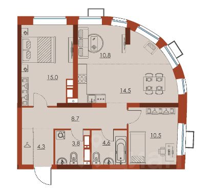 продам 3-к квартира14 330 516 ₽