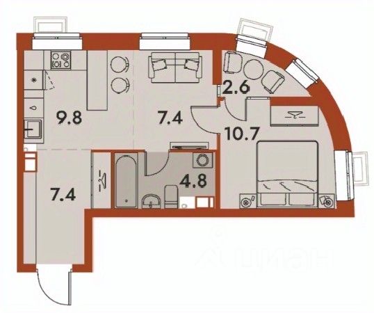 Общая площадь42,7 м2