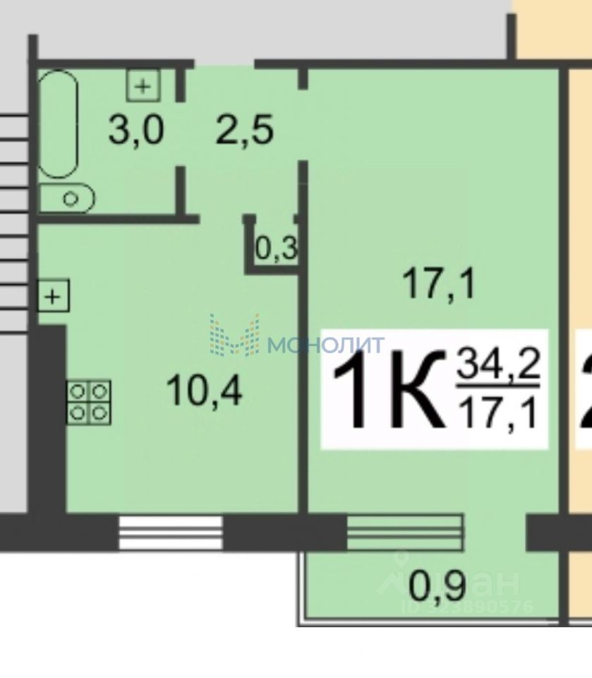 Площадь квартиры составляет 34.20 кв.м., большая квадратная кухня 10.4 кв.м. В квартире стандартный ремонт, который позволит вам с легкостью превратить эту квартиру в свой уютный дом. Отличное сочетание цены и качества - идеальный выбор для первой квартиры.