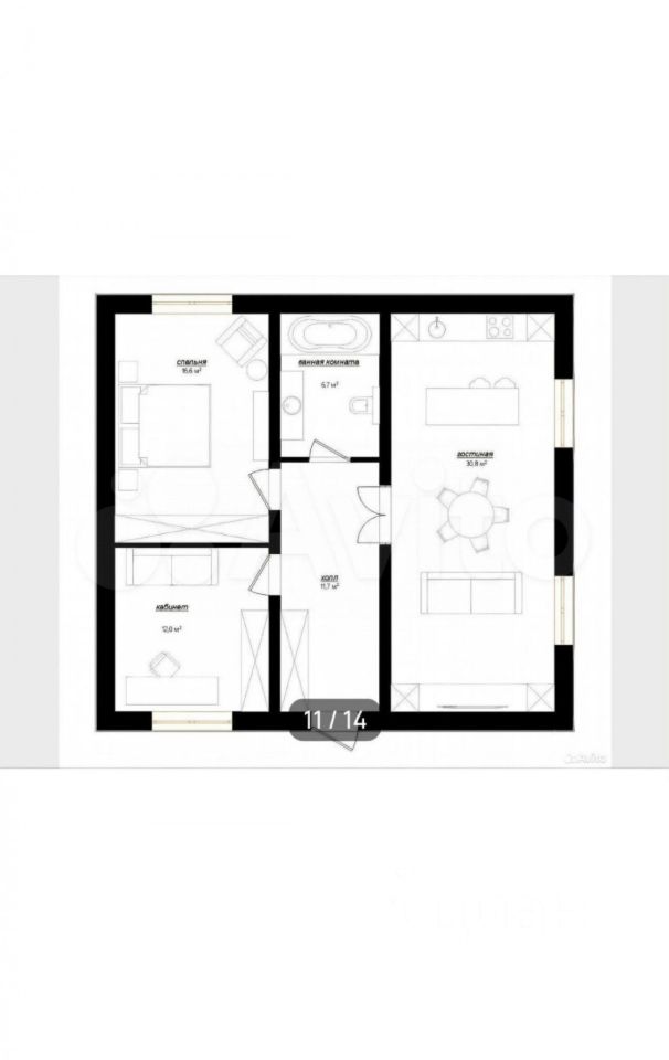 Арт. 125567758 Продается современный 1-этажный дом.