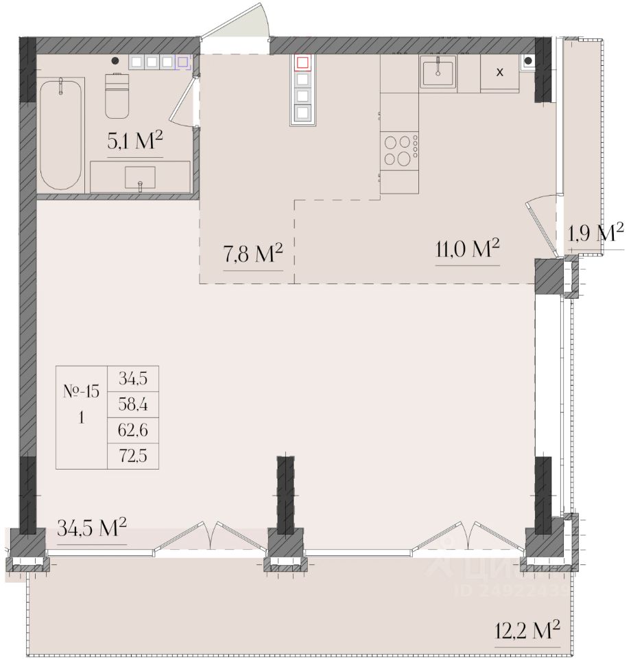 Продаётся 1-комнатная квартира в строящемся доме (Дом 1), срок сдачи: II-кв. 2027, общей площадью 62.6 кв.м., на 4 этаже. Новый жилой комплекс ''Семашко 17'' от застройщика ''Разумные инвестиции'' расположен по адресу: г. Нижний Новгород, ул. Семашко