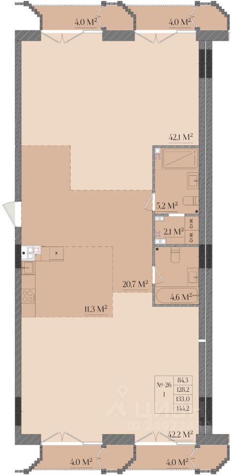 Продаётся 3-комнатная квартира в строящемся доме (Дом 1), срок сдачи: II-кв. 2027, общей площадью 133 кв.м., на 3 этаже. Новый жилой комплекс ''Семашко 17'' от застройщика ''Разумные инвестиции'' расположен по адресу: г. Нижний Новгород, ул. Семашко