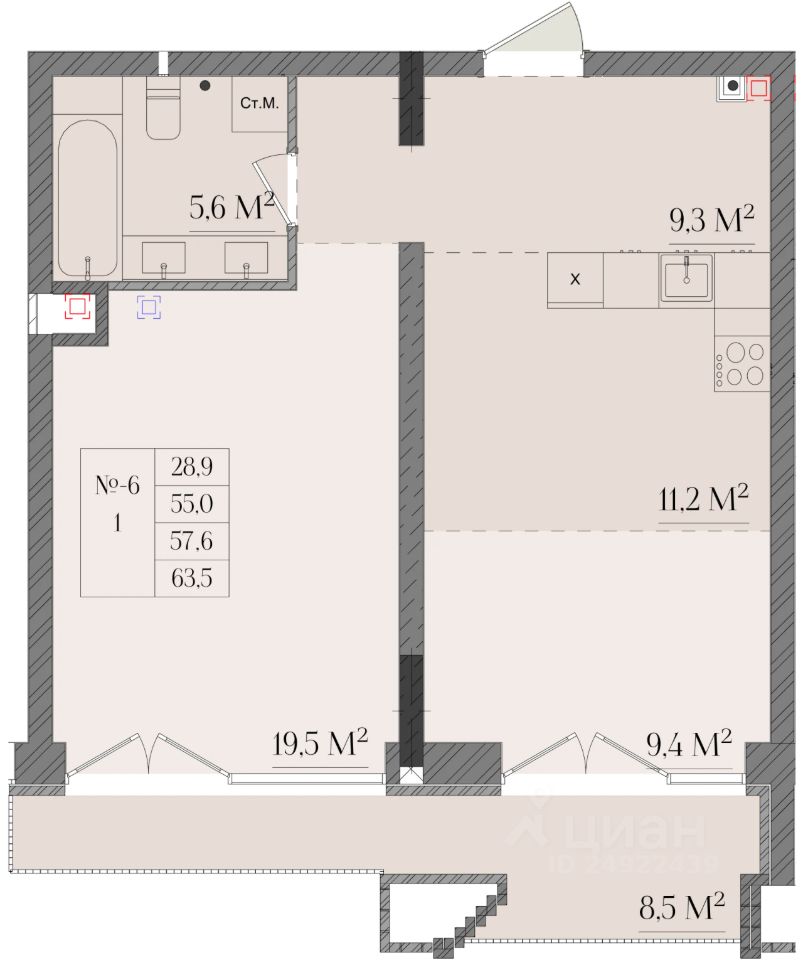 Продаётся 1-комнатная квартира в строящемся доме (Дом 1), срок сдачи: II-кв. 2027, общей площадью 57.6 кв.м., на 1 этаже. Новый жилой комплекс ''Семашко 17'' от застройщика ''Разумные инвестиции'' расположен по адресу: г. Нижний Новгород, ул. Семашко