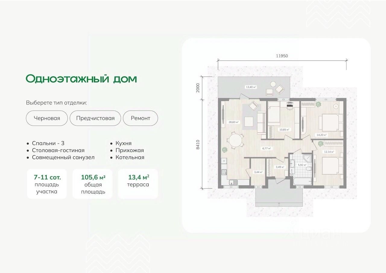 Современный коттедж для жизни за городом: - 3 спальни + кухня-гостиная 29 м2 - Терраса с видом на природу - Качественные материалы: керамический кирпич, утепление 100 мм, мягкая кровля - Коммуникации: свет, вода, газ, септик, теплый пол - Участок с забором, воротами и калиткой