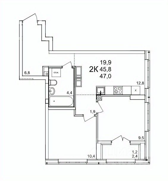 Общая площадь47 м2
