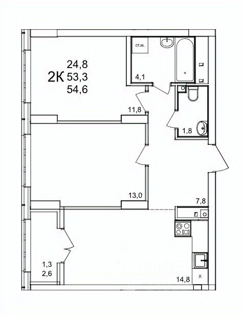 Общая площадь54,6 м2