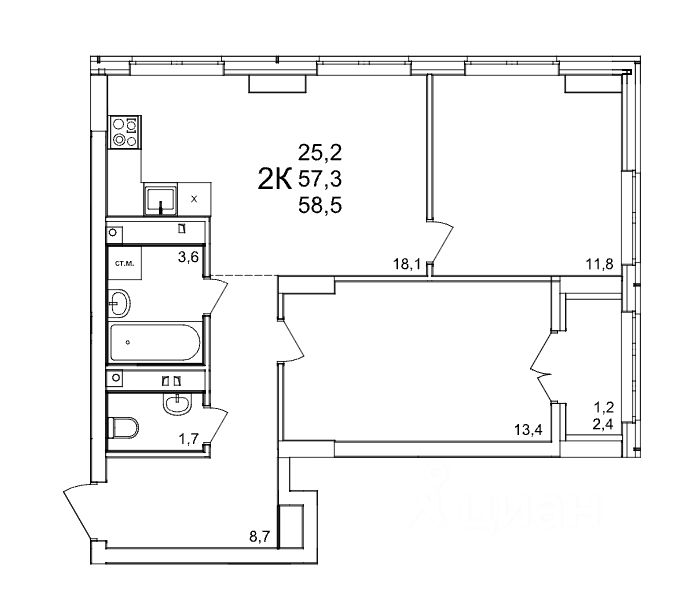 Общая площадь58,5 м2