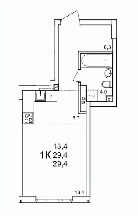 Общая площадь29,4 м2