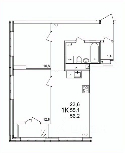 Общая площадь56,2 м2