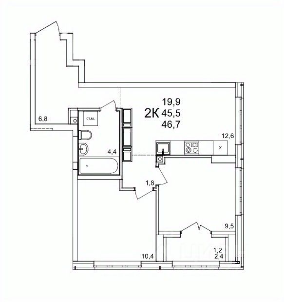 Общая площадь46,7 м2