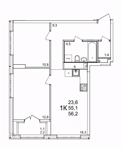 Общая площадь56,2 м2