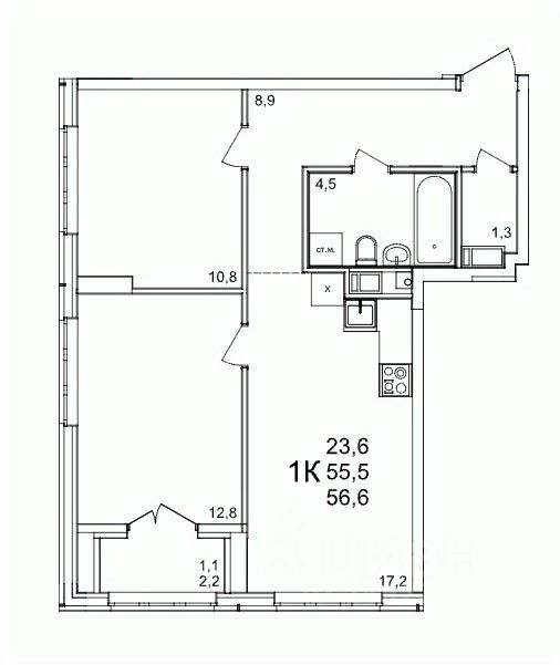 Общая площадь56,6 м2