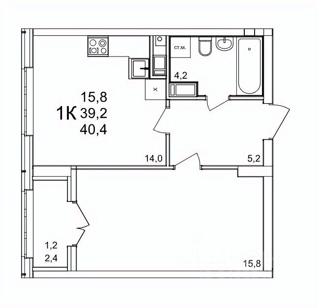 Общая площадь40,4 м2
