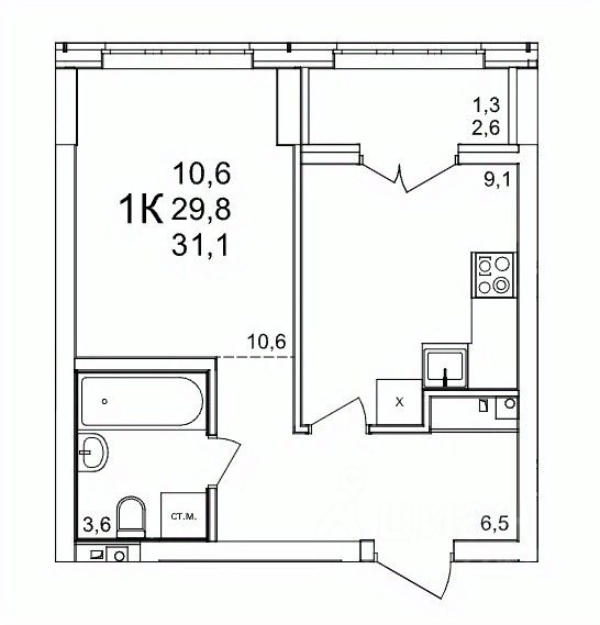 Общая площадь31,1 м2