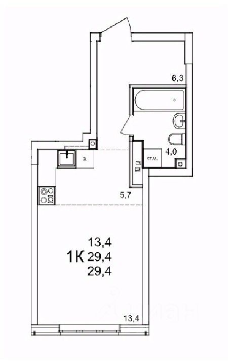Общая площадь29,4 м2