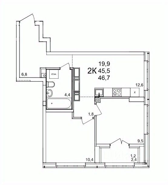Общая площадь46,7 м2
