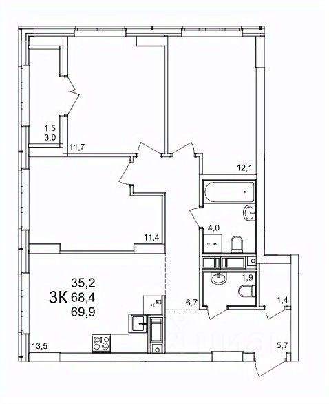 Общая площадь69,9 м2