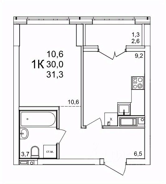 Общая площадь31,3 м2