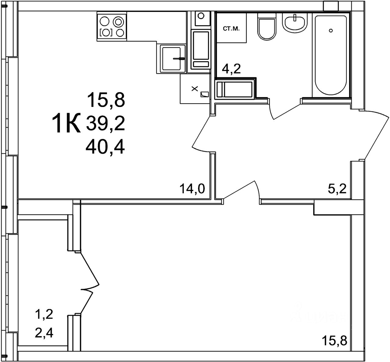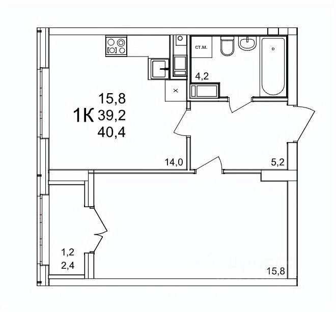 Общая площадь40,4 м2