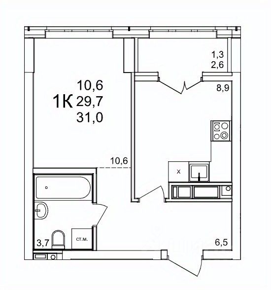 Жилая площадь10,6 м2