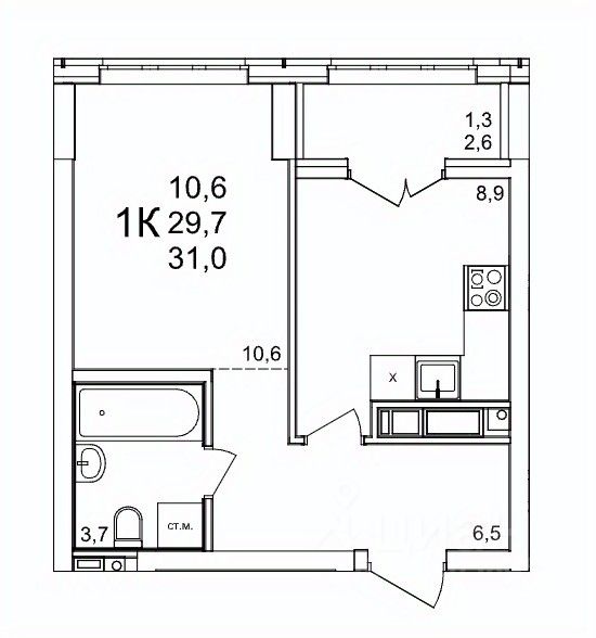 Общая площадь31 м2