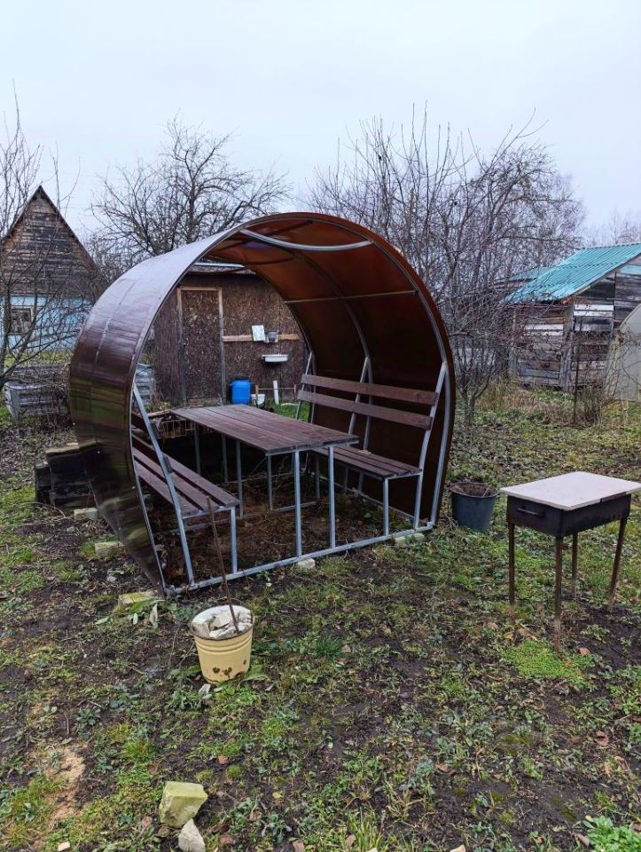 Небольшой домик, состоящий из одной комнаты и кухни. Начато строительство бани - поставлен каркас, крыша, без внутренней отделки. Туалет, сарай, беседка. Участок ровный, скважина с питьевой водой. Есть место для парковки автомобиля. Груша, яблоня, смородина, цветы. По всем линиям имеется видеонаблюдение, сторож.