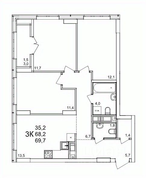 Общая площадь69,8 м2
