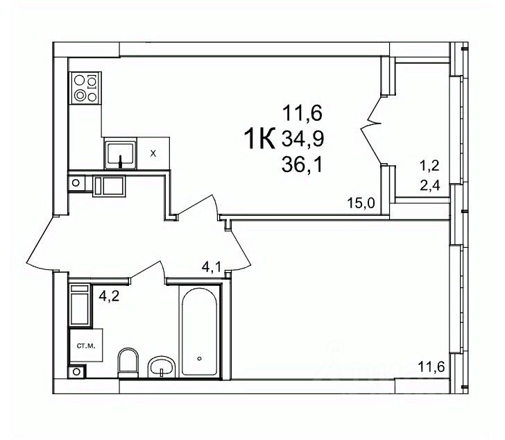 Общая площадь36,1 м2