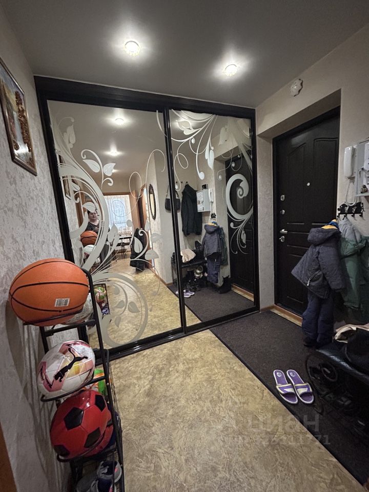 Просторная двойная прихожая, остается большой встроенный, глубокий шкаф.