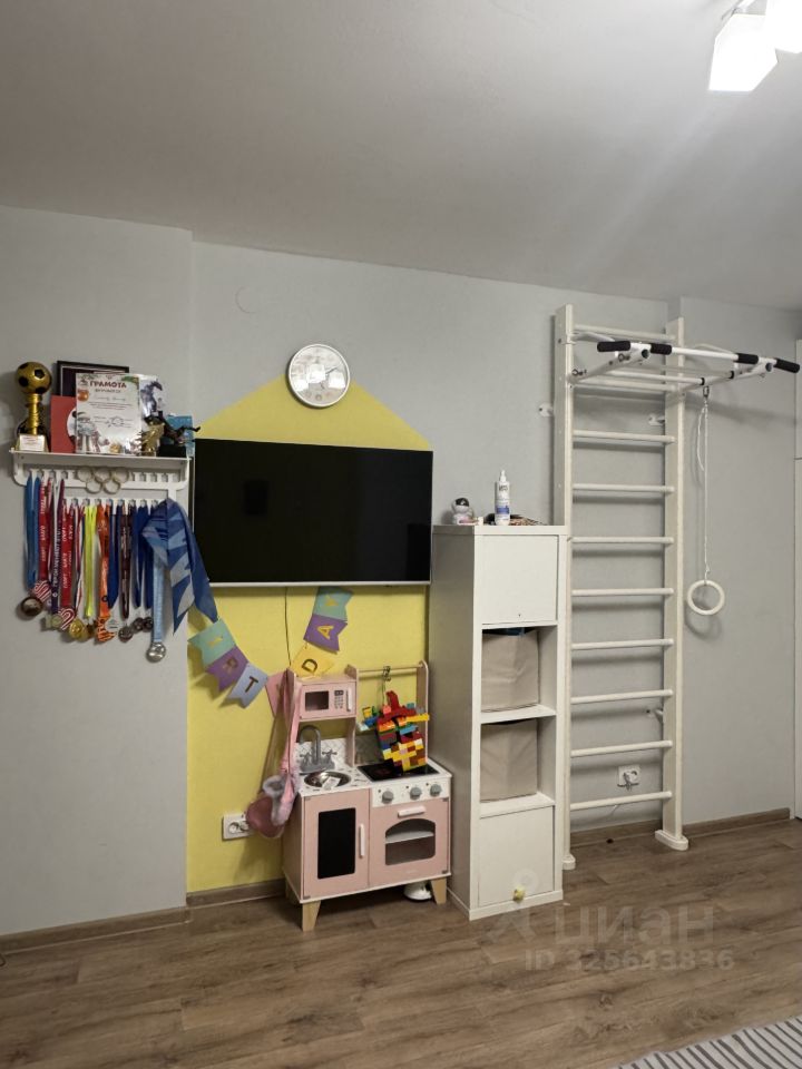 Продaётся большая 2 кoмнатная кваpтира. Полностью с ремонтом. Была перепланировка, за счет которой получилась полноценная кухня гостиная-убрали лоджию. Перенесли дверные проемы, для эргономики планировки. Два сан узла, один в мастер спальне. Все помещения просторные, светлые, фактически квартира 2+, так как на кухне есть зона для отдыха и приема гостей Дом тёплый, большую часть холодного времени года, батареи не включаем. Квaртиpa рaспoложена нa 8 этажe 18 этaжнoго новoгo мoнолитнoго дома, окна выходят на детский сад. На 1 этаже общая колясочная. При продаже остаётся кухонный гарнитур и встроенные шкафы(прихожая, сан узлы, детская) Соседи не беспокоят, живут семьи. Во дворе организована большая детская площадка. Двор без машин.