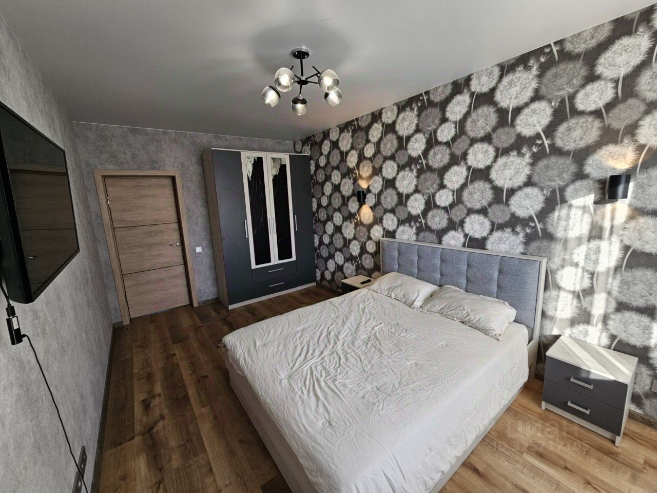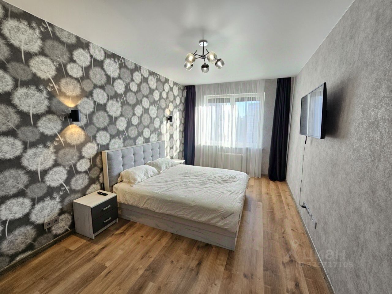 В квартире оборудованы взрослая спальня, гостиная, кухня-столовая, третья комната в данный момент без мебели.